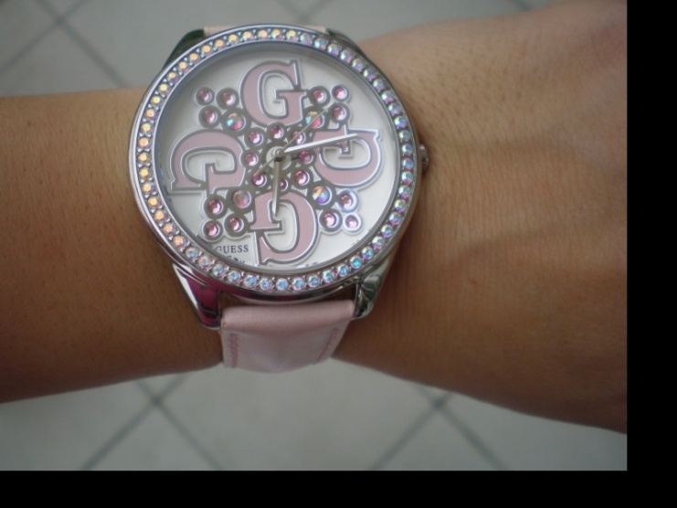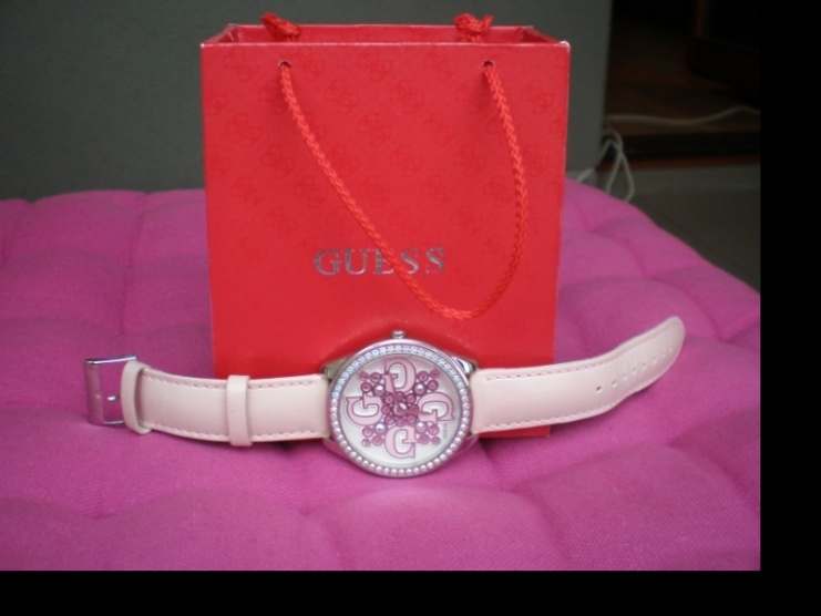 Prodám světlounce růžové něžné originální hodinky Guess.Kulatý dispej vyzdobený růžovými kamínky,Po obvodu dispeje osázeno kamínky Swarovski,kožený řemínek,dvakrát nošené,posílám s original balením.Cena:650Kč včetně poštovného.Dobírkou.