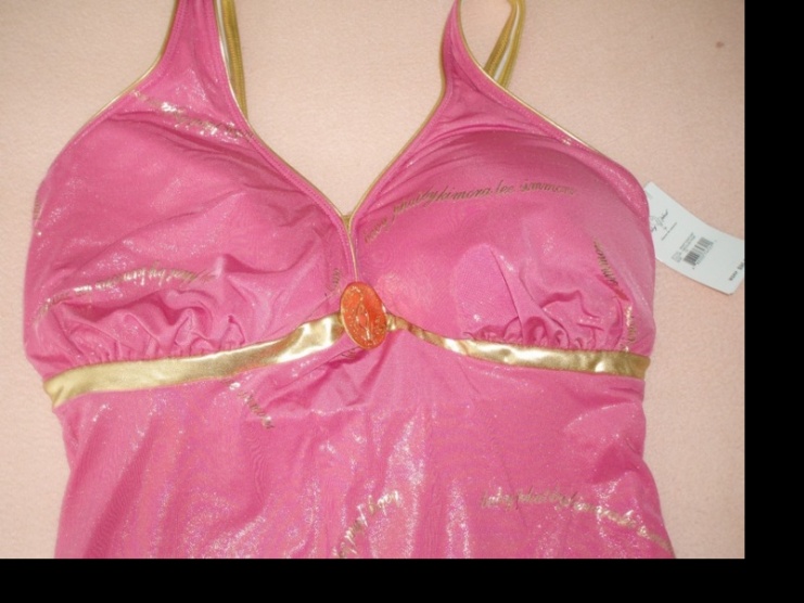 Úplně nové, nenošené plavky zn. Baby Phat! Krásná růžová barva se zlatými nápisy Baby Phat a zlatou ozdobou na prsou! Celé plavky jsou jakoby třpytivé! Kupované v USA, tady se nedají sehnat! Velikost je 1X, což odpovídá cca naší vel. 44-46! Cena je 600,- vč. pošty