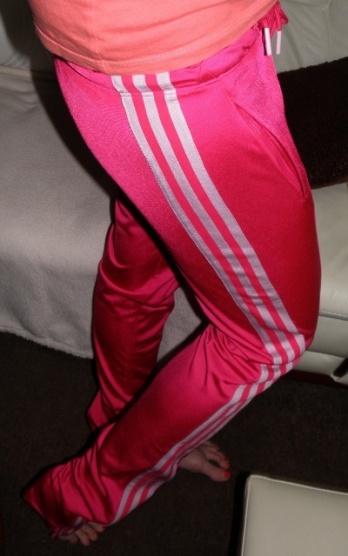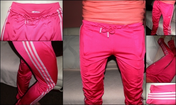 0prodám nebo popř. vyměním růžové tepláky adidas, vzaté cca.2x na sebe, neunosím je, PC 2300,- mají dvě kapsy, dole jsou zúžené ale na bocích zipy takže se dají rozšířit.