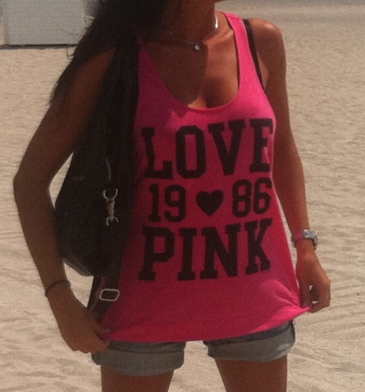 Sytě růžové dlouhé tílko VS, je psané XS ale je to spíš oversize, odpovídá klidně M, volný střih.
