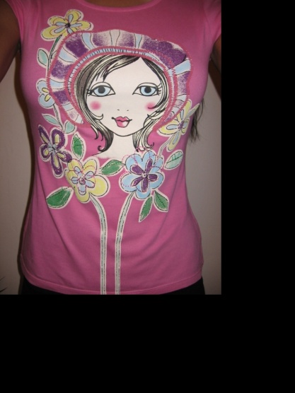 Prodám minimálně nošené růžové tričko s panenkou.