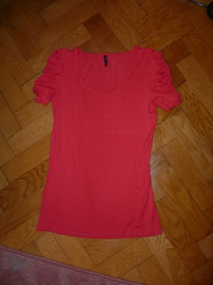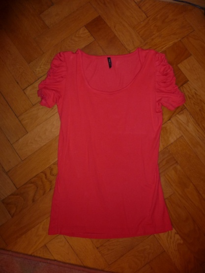 Tričko má krásnou, dost výraznou barvičku- něco mezi růžovou a oranžovou.. Barva odpovídá fotkám. Tak dvakrát nošeno, bez vad, na mne moc výrazné. Je delší.