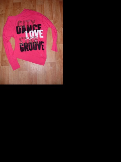 Prodám nenošené růžové tričko s nápisy z flitrů na jedno rameno.