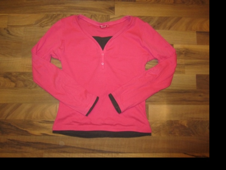 Růžové bavlněné tričko s dlouhým rukávem, velikost odpovídá XS nebo pro dítě školního věku.