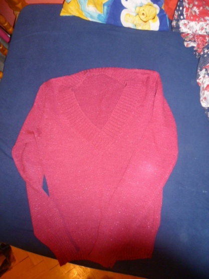 Růžovo fialový svetr s výstřihem do V zn. Terranova
