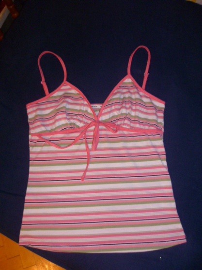 Růžovo zelený pruhovaný top na ramínka