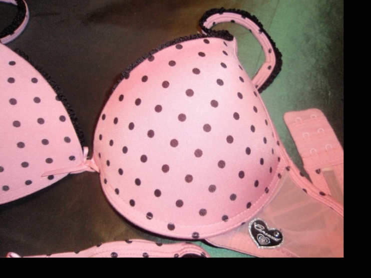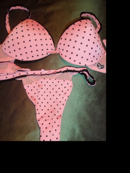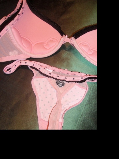 Set podprsenky a kalhotek, asi dvakrát vzaté, jako nové, ale bohužel jsem odstřihla cedulky.. po změření má podprsenka v roztaženém stavu 65 cm, kalhotky odpovídají velikosti S, košíčky podprsenky odpovídají B (většinou si kupuji 75