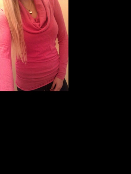 Opravdu jen párkrát vzatý, originál od VS. Velikost S, ale může být i pro M. Barva se na stránkách jmenovala peony, je to taková zajímavější růžová. Je tenčí, na bocích řasený. Cena : 350 Kč