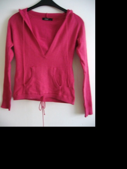 0Prodám krásný růžový svetřík. úplně nový. (jednou jsem ho na sobě měla). Svetřík je s kapucí a klokánkovou kapsičkou, spodním okrajem je vedená šňůrka, PC 600 Kč, prodám za 399 Kč.