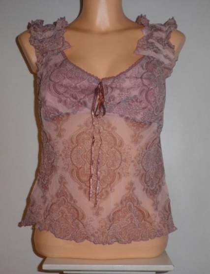 Jednou nošený top s volánky, moc krásný, vel. 38.