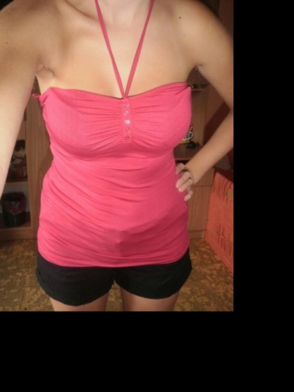 Pěkný, veslý top, koupila jsem ho zde ale je mi velký, velikost uvedena 2XL.Zavazování za krk. Velmi příjemný a přizpůsobivý materiál. Vhodně pro někoho s většíma prsama.