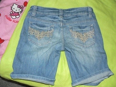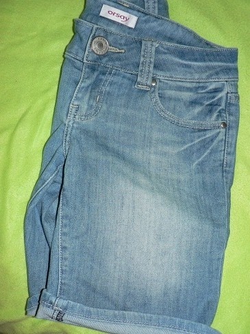 Nabízím šortky džínové vel M,L značka: Orsaystav-novépc: kolem 300-400kčnenošené!zdobení na zadních kapsáchpas- 42cm