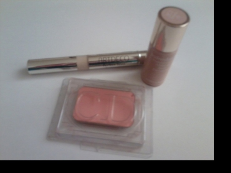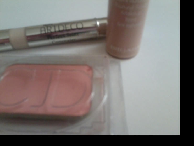Sada obsahuje make-up od Estée Lauder - nový, barva se přizpůsobí, řekla bych střední odstín, ani na porcelánovou, ani na vyloženě tmavou pleť. Dále v sadé korektor od značky Artdeco - též nový a oranžové zdravíčko Christian Dior - párkrát použité.