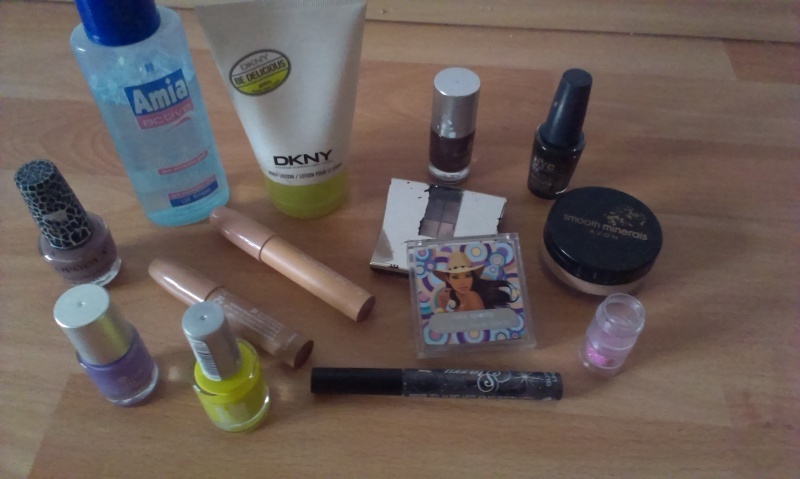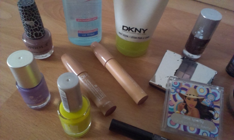 - 5x laky na nehty (NYC, Essence, S-he ..) - tmavě zelený, 2x hnědý, fialový, žlutý - nové i párkrát použité, víceméně stále plné, nevyschnuté!