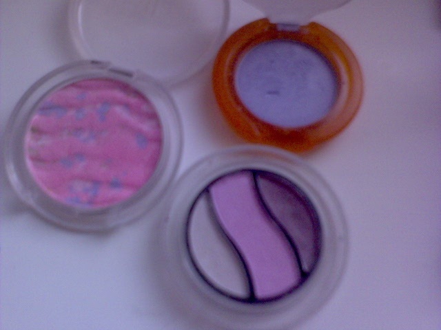 0prodám patery oční stíny, barvičky jsou mnohem hezčí, foceno mobilem, všechny do fialkova nebo do růžova, málo používané