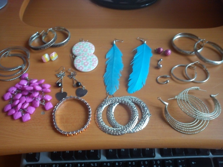 Prodám tuto sadu naušnic. Celkem 12 párů. K tomu dávám jako dárek oranžový náramek (viz foto) a taky dva piercingy do pupíku.