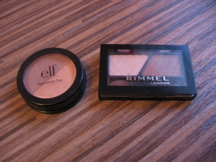 Oční stíny ELF - odstín Butter Pecan, duo, světle a tmavě hnědá s jemnými třpytkami, použité cca 5x.