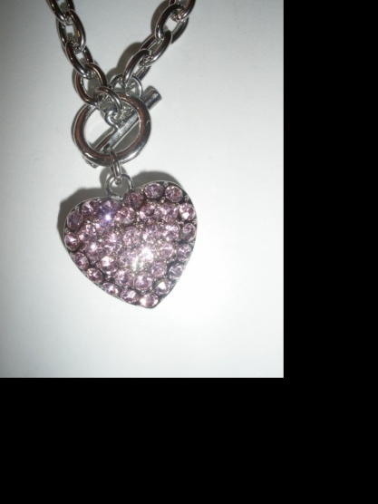 A dále ještě nabízím nádherný náhrdelník s přívěskem ve tvaru srdce s krásnými lesklými růžovými krystalky.