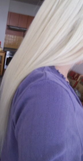 Před chvilkou jsem si podruhé umyla vlasy Swissem, nechala jsem ho tentokrát působit "jenom" 10 min. a výsledek? "Stříbrné" vlasy, v délkách teda lehce fialové, ale to není na první pohled vidět... bomba!