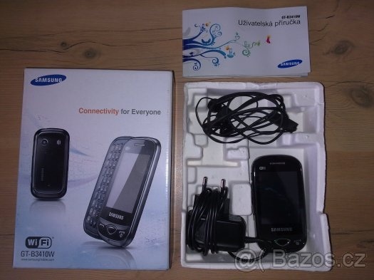 Samsung B3410W Black WiFi disponuje přímým přístupem na komunitní servery jako je Facebook nebo My Space. Mobilní telefon Samsung B3410W je výsuvné zařízení s QWERTY klávesnicí a dotykovým displejem.Vestavěný fotoaparát je na mobilním telefonu Samsung B3410W samozřejmostí. Samsung B3410W nabízí fotoaparát s rozlišením 2 MPx.Mobilní telefon obsahuje vnitřní paměť 30MB, kterou lze dále snadno rozšířit díky paměťovým kartám MicroSD. Samsung B3410W vydrží v pohotovostním stavu až 670 hodin a nepřetržitého volání si můžete užívat až 350 minut.Mobilní telefon Samsung B3410W nabízí i řadu dalších speciálních funkcí, mezi ně například patří nízká cena s vytříbeným designem, bluetooth či FM rádio