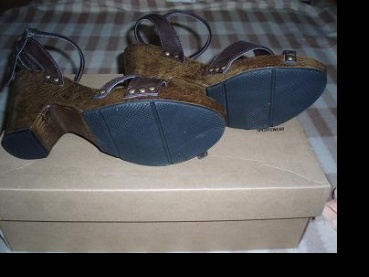 Krásné sandálky zn. Ann Christine. Jsou zcela nové, na mě moc vysoké. Byly již koupeny s menší chybkou, které jsem si všimla až doma, ale nic hrozného. U pravé botky je z vnitřní strany odtrhlý páseček (viz. foto). Lehce opravitelné.