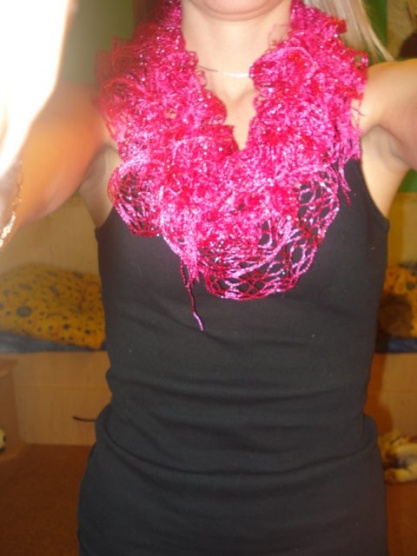Prodám šátek sytě růžový barvičky. Byly to dva menší, ale spojila jsem je do jednoho pro větší efekt..