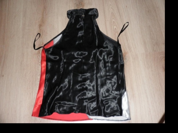 0top velokosti36/38 barva černo šedo červená sexy střih... v průramku malý flíček...jinak ok míry jsou....