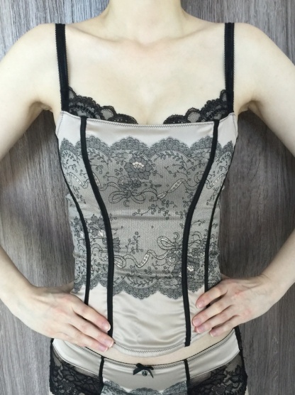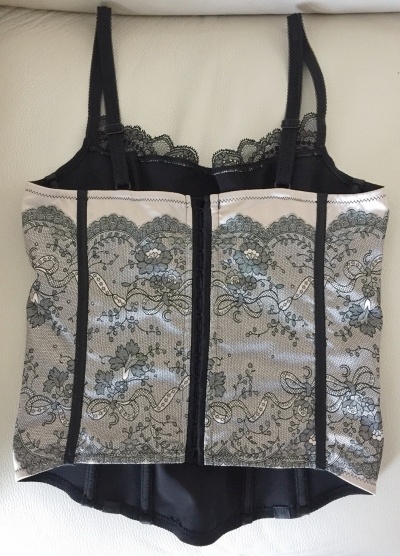 Délka vepředu 33-36 cm (bez ramínek), vzadu 23-25 cm (bez ramínek), 2 řady háčků na zapínání. Živůtek je strečový, takže krásně sedne. Velikostně odpovídá. Skvělý stav. PC 3500,-.