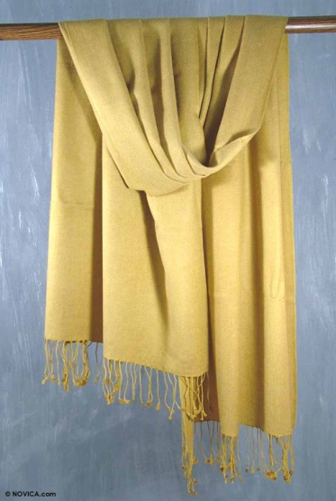 no ten obchod, co prodává žlutou pašmínu má věci, které pro něj dělají peruánští indiáni z té nejkvalitnější pašmíny. Má samozřejmě i věci z Indie, ale ty jsou o poznání levnější. Zelenou kostku si vezmu a i tu burberry, protože mám jednu kabelečku od Max Mary - krokodýlí kůže, a ta je jednobarevná. No myslím si, že když budu mít tak 2, 3 pašmíny, tak budu v podstatě ve stejném oblečení pokaždé jiná. S minimálními náklady. Přiznejme si, že cena pašmíny je někde jinde než cena kabátu.