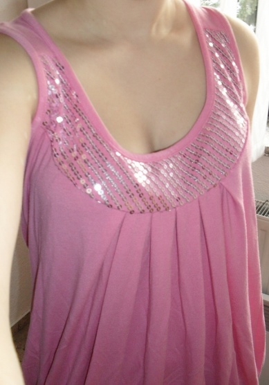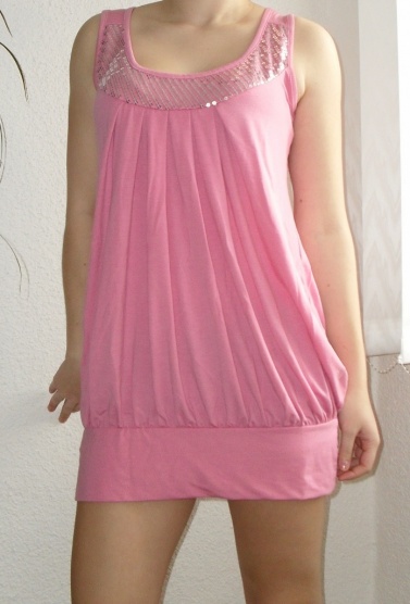 0Krásná delší tunika nebo šatičky světle růžové barvy u výstřihu s flitry...