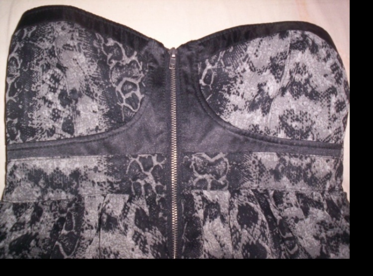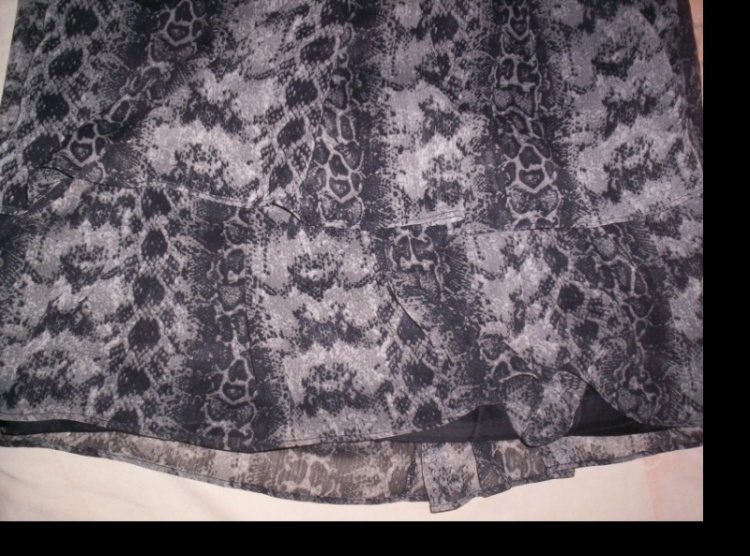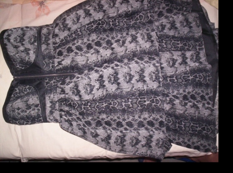 0Nové, nepoužité šaty hadího vzoru. Uprostřed zip. Velikost S. Volánkové. Vpadají moc pěkně, bohužel mi nešly dobře nafotit. Dělají pěkná prsa.