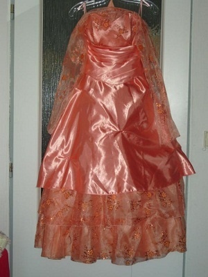 Nabízím šaty krásné meruňkové barvičky. Jsou korzetové, dllouhé až na zem. Mají kruh, který se ale brát nemusí, tím pádem nejsou šaty tak ,,princeznovské´´.