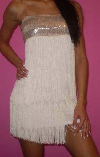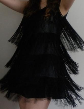 Prosím nabízejte levně nějaké šaty s třásněmi jako jsou na obrázku. Délka nad kolena a ve vel. S-M podle rozměrů. Je celkem jedno v jaké barvě, ale nejlépe černé.