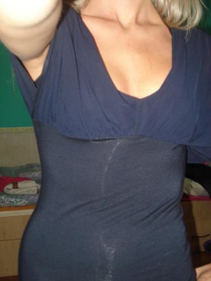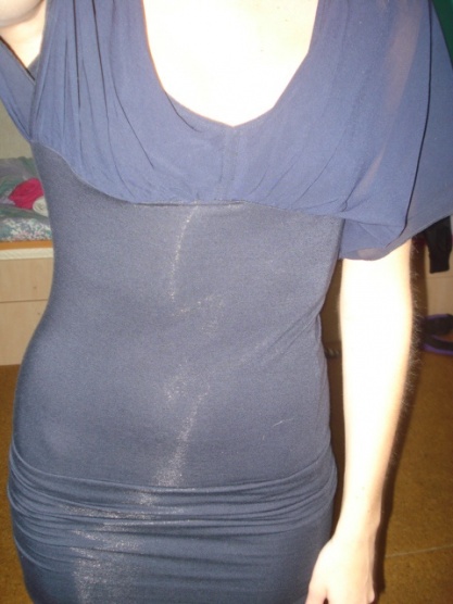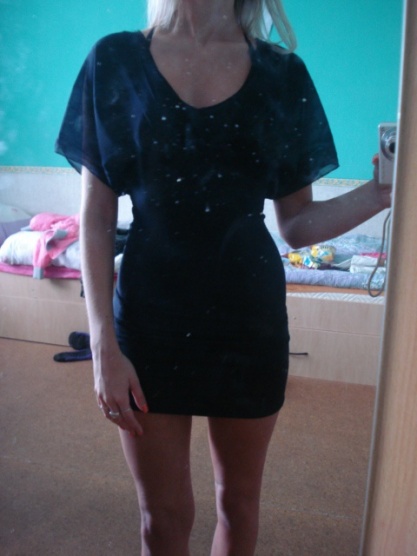 Barvička je tmavě modrá, má krásný výstřih, rukávy netopýřího střihu.
