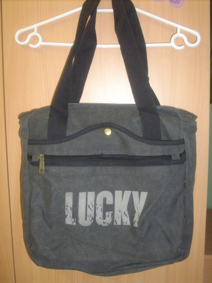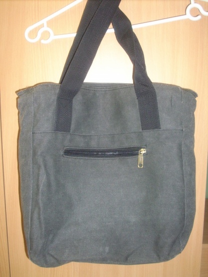 Šedá kabelka, má hodně vnitřních kapes a v pohodě se do ní vleze i sešit A4.