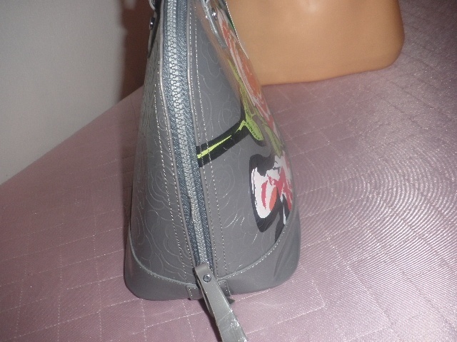 Krásná šedá kabelka s moderním potiskem růže - nošení v ruce, popruh není součástí. Oblíbený tvar.