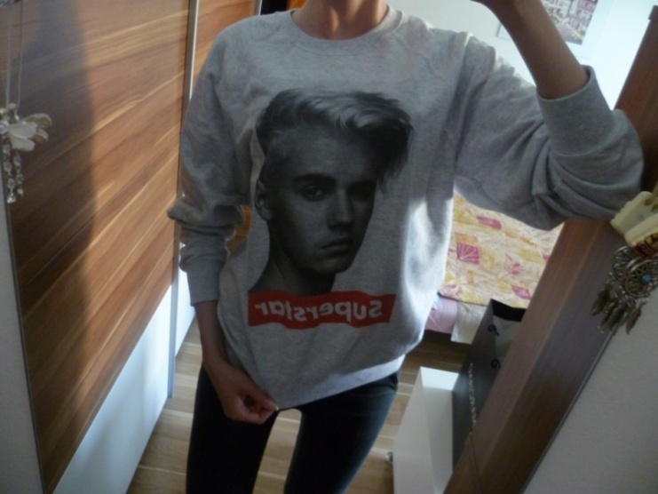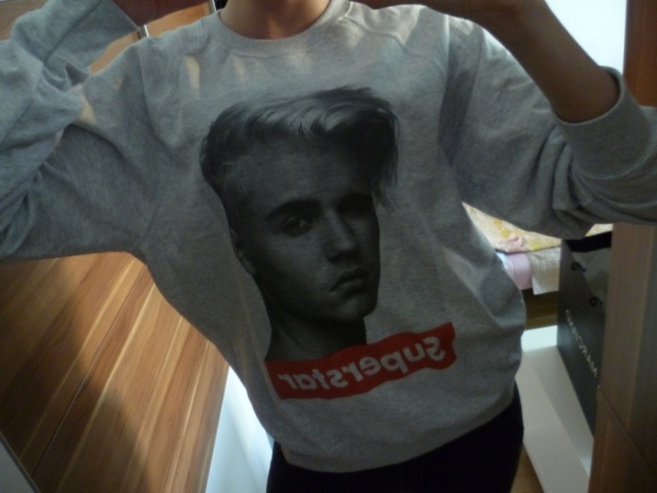 Stylová mikina Justin Bieber - vel. M - nová, šedá barva, fotka zpěváka, ve stylu Boyfrined, nápis Superstar, zakoupena v Anglii, prodávám z důvodu větší velikosti, cena včetně pošty, PC: 999,-