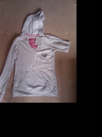 0Světle šedá mikina s klokánkem a tmavě šedým nápisem s kamínky