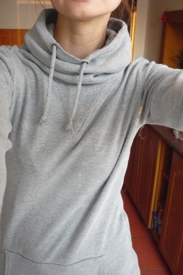 Prodám šedou mikinu s límcem koupenou v NewYorkeru, v oblasti prsou je pár malinkých teček, ale při nošení nejsou vidět.