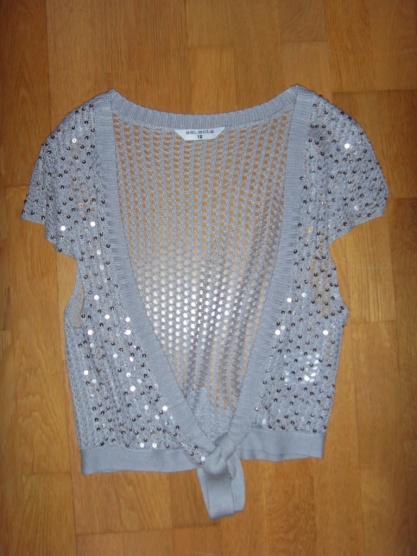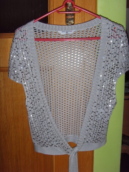 Prodám šedé bolerko, na přední části pošité stříbrnými flitry.
