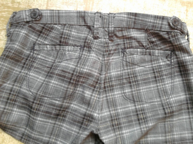 Prodám krásné šedé kostkované kraťasy. Jsou prošívány zlatou nitkou. Vzadu moderní kapsičky. Mě bohužel malé, tudíž nenošené.Barva odpovídá fotkám. Cena 150+ poštovné