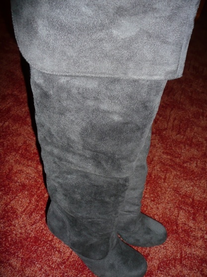 Prodám nové (měla jsem je jednou na noze chviličku,tak si troufám napsat nové, protože jsou naprosto v původním stavu) šedé semišové kozačky, které se dají nosit jak pod koleno klasicky, tak natáhnout nad koleno,takže vypadají super jak k legínám, sukni i džínům. Jsou velice pohodlné, zateplené, ale nemaji kožíšek uvnitř, vhodné i na podzim i na zimu.