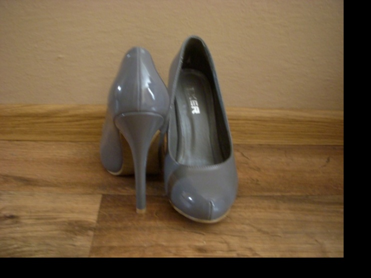 Prodám šedé lakované boty z Mixéru. Výška platformy 1cm, výška podpatku 10 cm. Botky jsou pohodlné a na noze velmi přijemné. Poštovné 80,-.