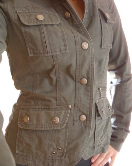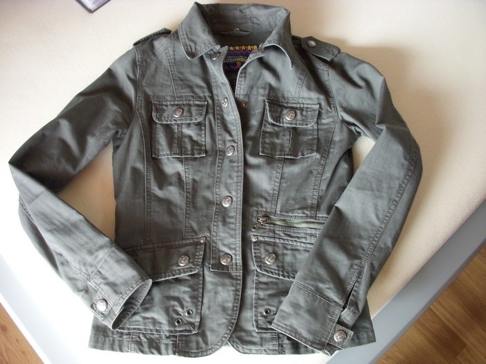 Ahoj holky. Prodám šedozelené, spíš šedé (vypadá trochu jinak na fotce než na denním světle) sáčko v "army" stylu pořízené v prodejně C&A. Měla jsem ho na sobě asi 2x, ale mám prostě své jiné oblíbené a tak tohle jen visí ve skříni a čeká na někoho jiného. Velikost je S, zapíná je na "cvoky" a padne moc hezky, podtrhne postavu, skvěle se hodí k např. k džínům.