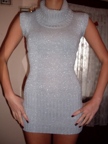 Prodám minimálně nošené šatečky s velkým límcem, jsou se stříbrnými nitkami, na fotce to tolik nevynikne.