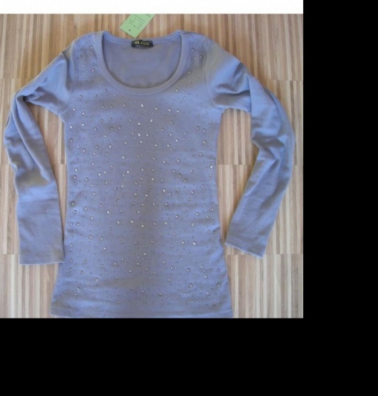 0Prodám toto luxusní tričko šedé barvy zdobené kamínky. Nové! Délka 66 cm, šířka 2x40 cm, dá se natáhnout i na 48 cm. Pište do SZ.