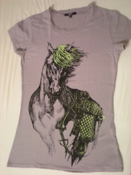 Prodám triko s kr. rukávem s obrázkem koně. Nenošené, cena 100+35 pošta.