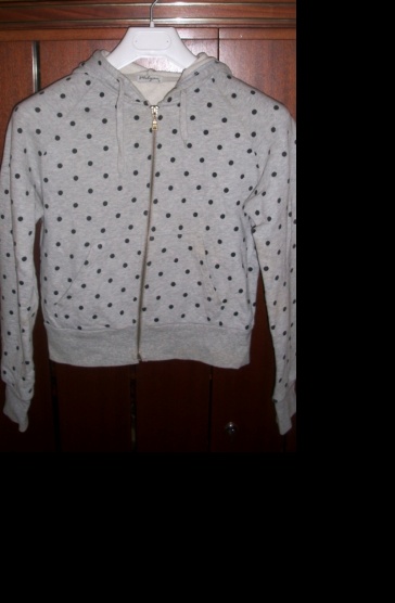 Nabízím šedivou rozkošnou mikinku s černými puntíky.