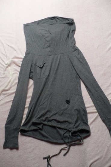 Mikina je originálně řešená velikým límcem, utáhováním dole na provázek + originální střih. Na prsou kapsička a dole na mikině brož.