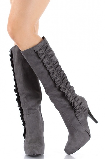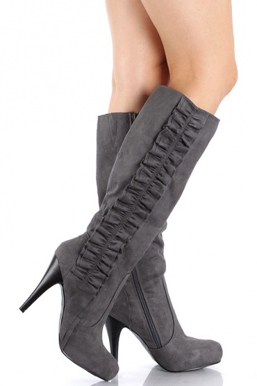 Materiál semiš, na noze kouzelné, ty volánky na straně vypadají nádherně,ale na mě vysoké. Mají popatek cca 10cm,ale podešev cca 2cm,takže sklon nohy je úplně v pohodě. Jsou vhodné na podzim i na zimu,nemaji kožíček vevnitř,ale jsou silnější, trochu vytpelené,není to jen ten semiš.